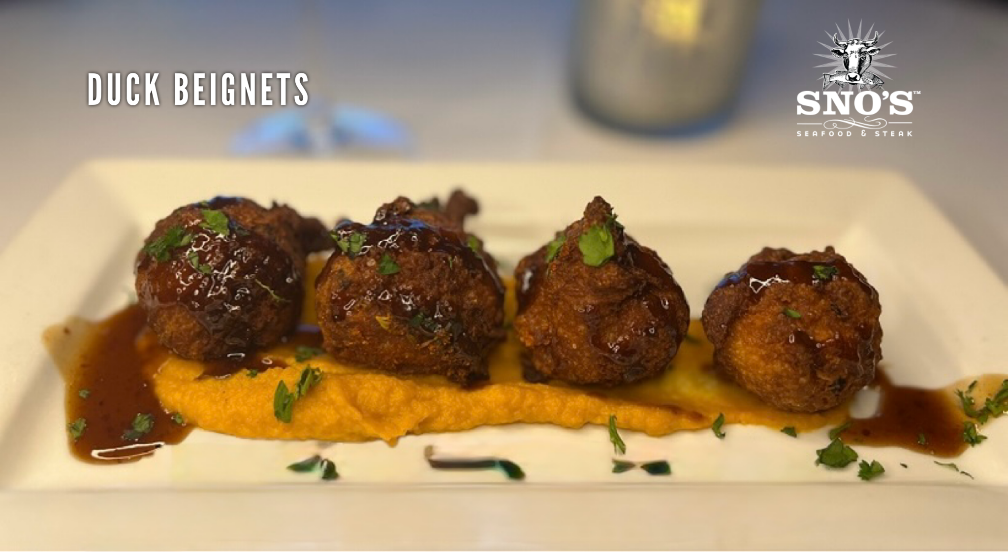 Handcrafted filet served over a hash of red, white, and sweet potatoes, bacon, and tasso, topped with a spicy demi-glace and lump crab meat tossed in a chimichurri sauce finished with onion strings